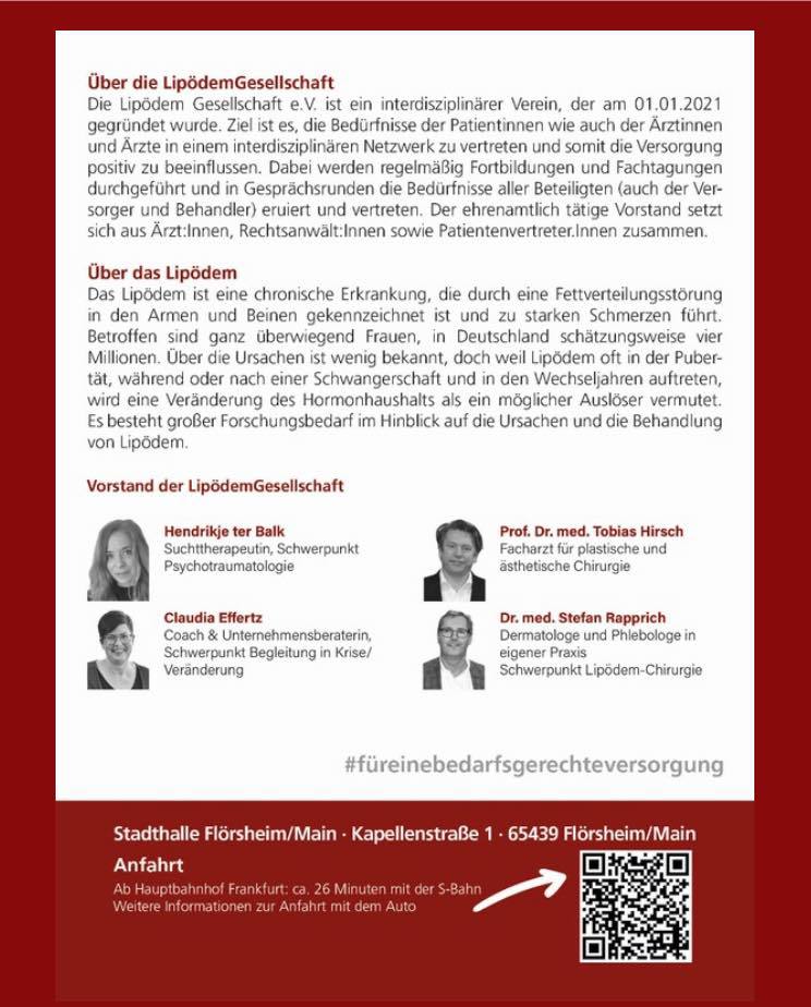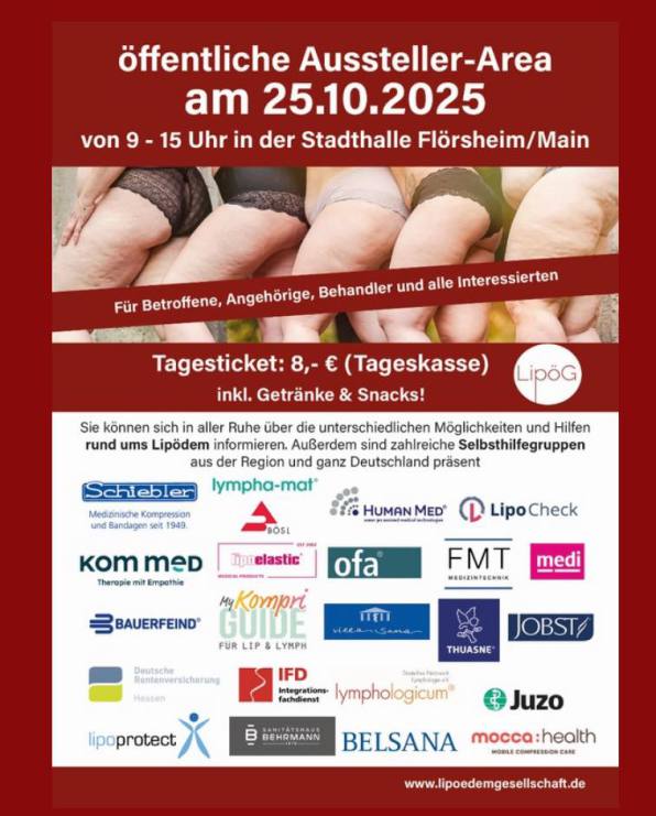den 25.10.25 zur Aussteller-Area nach Flörsheim und informieren sich über Möglichkeiten und Hilfen rund um das Lipödem. (Infos dazu im ersten Kommentar und im Post vorher)